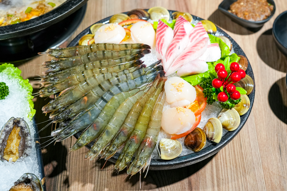 來吃石頭火鍋,真的是要邀一群朋友一起來,大家圍著桌子,點滿滿一桌的食材,隨便挑,拿好拿滿,吃得開心又過癮,氣氛也很棒!我們那天點了海陸拼盤套餐,有安格斯板腱牛、台灣黑豚五花肉和海鮮盤。