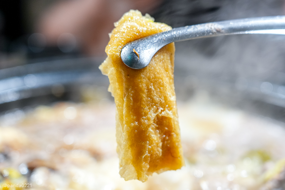 最後,把千張豆腐紙和鈴鈴卷放進鍋裡涮個兩三下,吸滿湯汁,吃起來軟嫩又有彈性,真的很不錯!